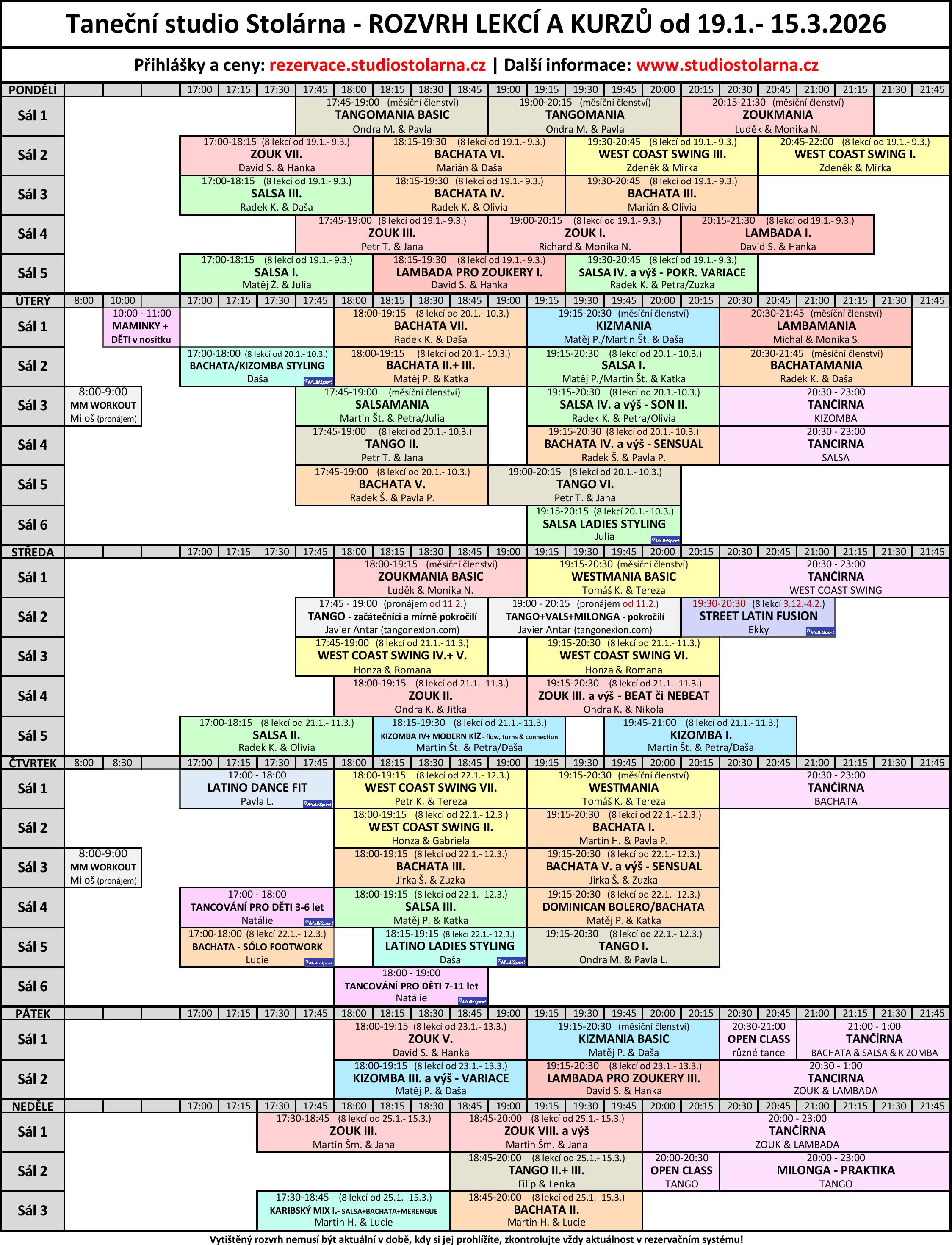 Dále v rozvrhu najdete samostatné sólové lekce: