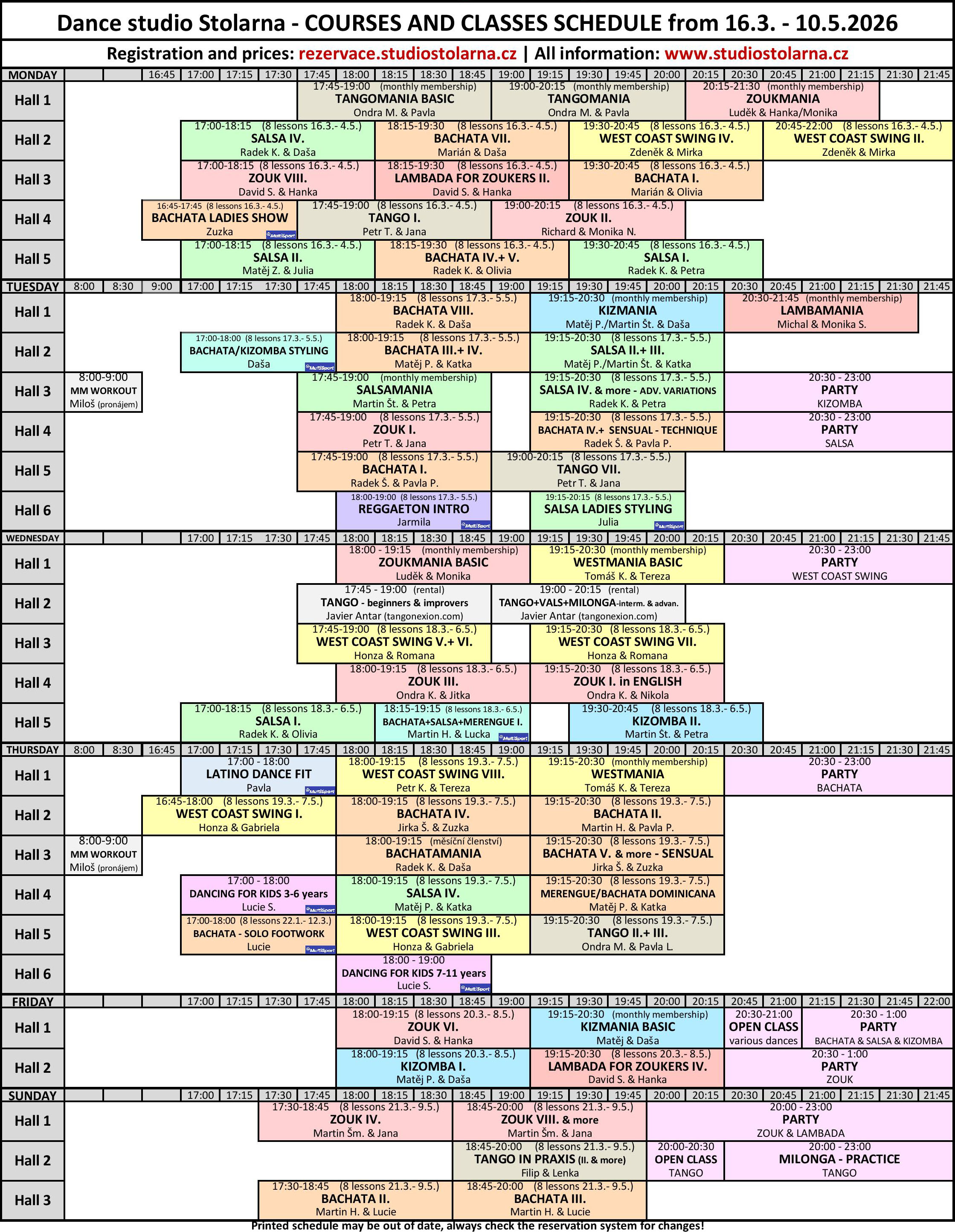 Currant courses and also new ones you can find in our reservation system http://rezervace.studiostolarna.cz